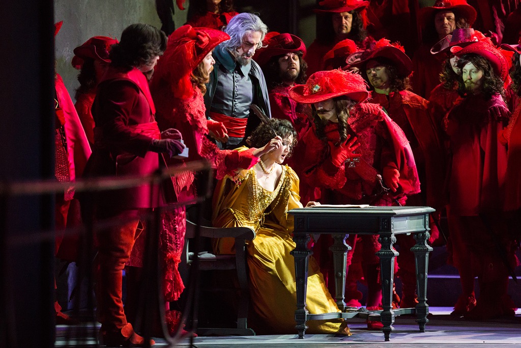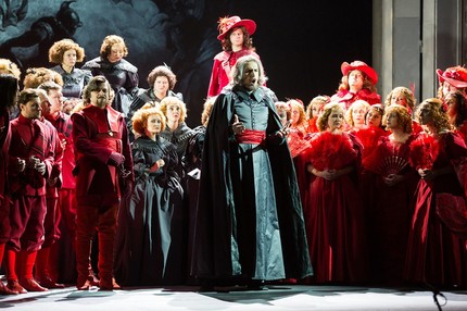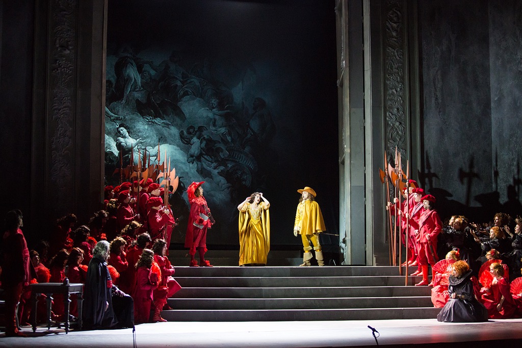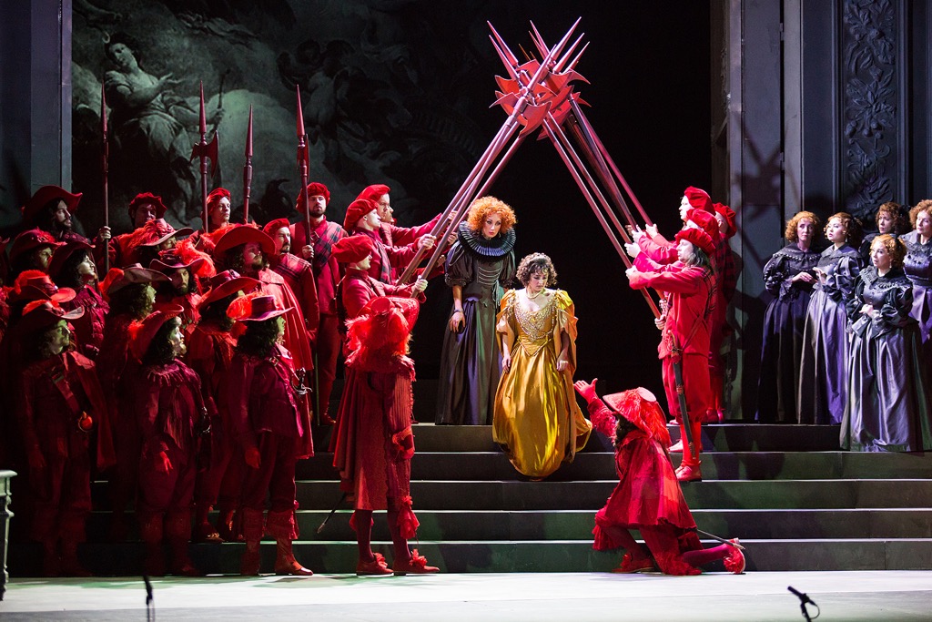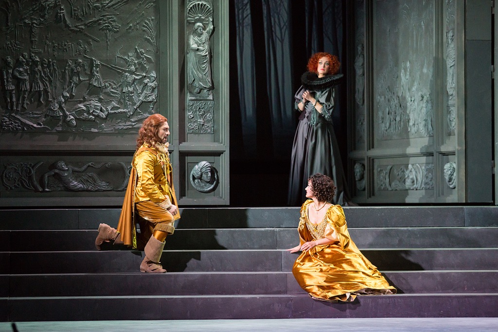 Всё это весьма рельефно прорисовано в либретто и музыке, а статичная черно-серая сценография (мощная во весь габарит сцены стена мрачного замка с массивными литыми воротами) – точно найденный, лаконично говорящий театральный фон, на котором и разворачивается драма героев.