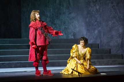 Театральный гардероб в монохромной гамме стилизован под эпоху истории, а пластика мизансцен современна и действенна. В чём-то «земля сценографии» и выросшие на ней «монохромные цветы одежд героев» (красные – «злые», черные – на сей раз «добрые», золотисто-желтые – специальные «цвета любви» Лючии и Эдгара) отсылают к идее постановки 2014 года на этой же сцене «Ромео и Джульетты» Гуно в режиссуре француза Арно Бернара.