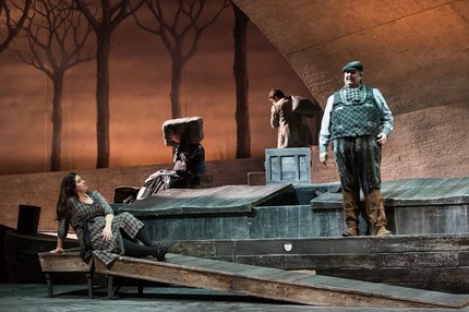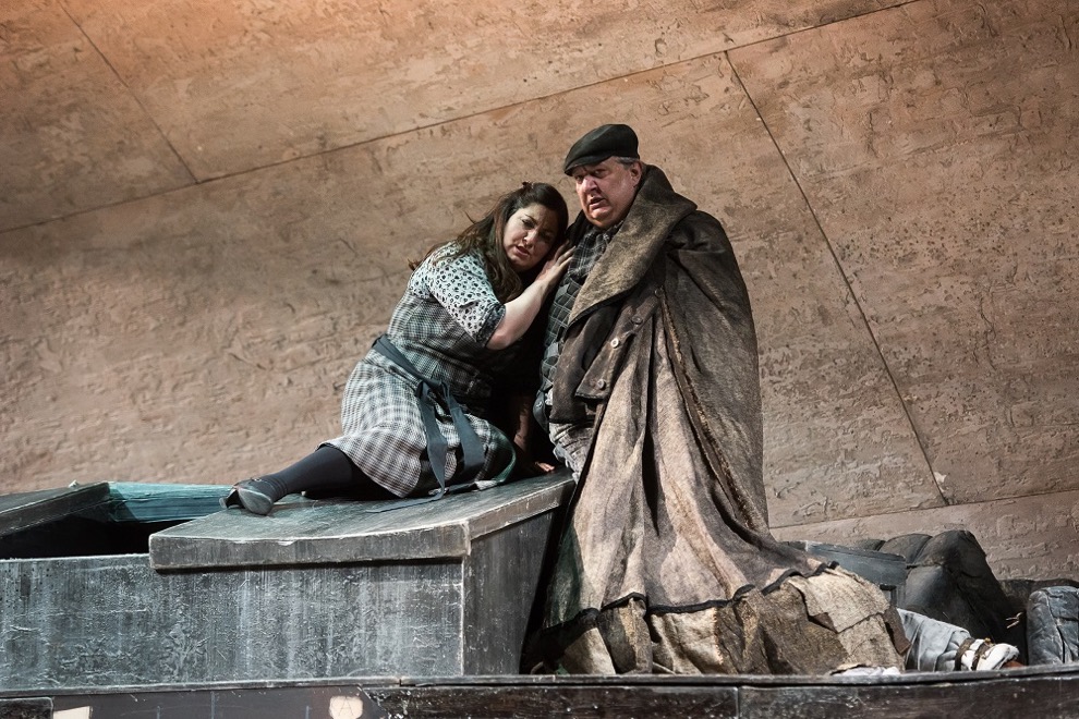 Все исполнители, занятые в «Плаще», превосходны, но над всеми возвышается Амброджо Маэстри в роли Микеле. Маэстри ныне, как сказали бы в Италии, un’istituzione, общественный институт. За плечами ломбардского гиганта превосходная и полностью заслуженная карьера, у многих зрителей с ним ассоциируются персонажи Фальстафа, Скарпиа и многих других. Его Микеле удивительно естественен, правдив, как если бы певец был знаком с системой Станиславского,— непомерно высокий, нескладный, с выпирающим животом, небрежно одетый, незлой, но снедаемый недовольством жизнью. Роль продумана до мельчайших деталей: как носить кепку, как курить трубку, как сидеть на палубе. И точно также, тончайшим образом продумана вокальная партия, в которой Маэстри показывает себя мастером выразительной фразировки.