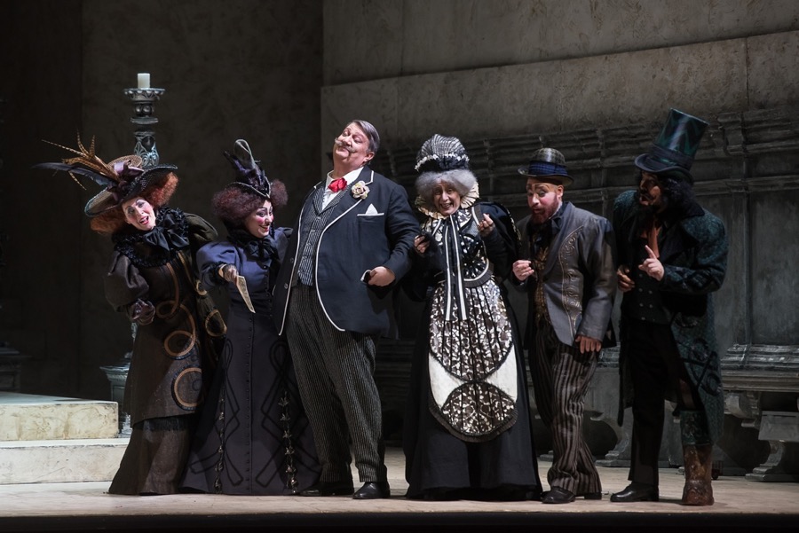 Умопомрачительная Анна Мария Кьюри в партии Дзиты по прозвищу «Старуха» предводительствует «командой» обезумевших и отвратительных родственников: Герардо — Джованни Кастальуоло, Нелла — Джулия Де Блазис, Герардино — Серена Кузимано, Бетто ди Синья — Валдис Янсонс, Симоне — Франческо Миланезе, Сарко — Фелипе Оливейра, Ческа — Аличе Молинари. Надо ли говорить, как отлично поет и играет вся команда, следуя тому же завету, что гигант Амброджо Маэстри,— развлекаться и развлекать публику?