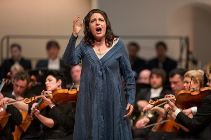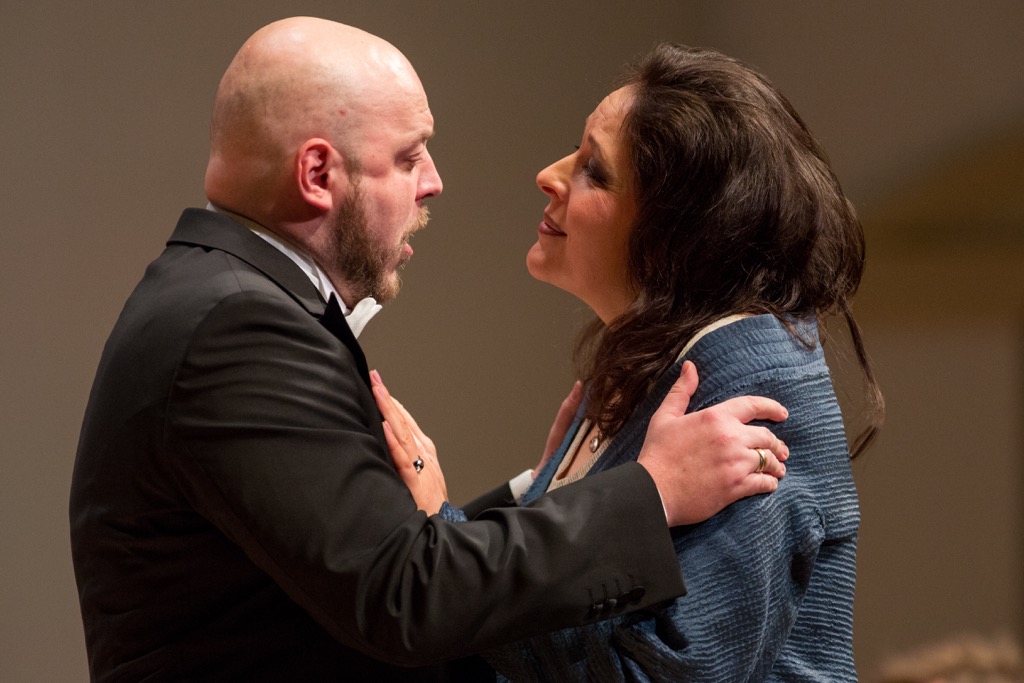 Но вернемся к певцам. Татьяна Сержан начинала карьеру в Санкт-Петербурге в театре «Зазеркалье», и, кажется, впервые Москва услышала ее в 2002 году в привозной постановке этого театра (в партии Мими в «Богеме» Пуччини). Но рецензент впервые услышал певицу лишь в 2012-м – в партии Тоски в одноименной опере Пуччини на сцене Deutsche Oper Berlin. А в 2013 году она исполнила в Москве партию сопрано в «Реквиеме» Верди. И эти два живых эпизода творчества певицы не оставили тогда никакого сомнения в том, что лирическая фактура ее голоса преобладала над драматической. Но нынешняя встреча с ней в Москве показала, что за пять прошедших лет голос исполнительницы превратился в сочное лирико-драматическое сопрано с удивительно красивым и плотным нижним регистром: сегодня драматическая фактура ее голоса явно преобладает над лирической.