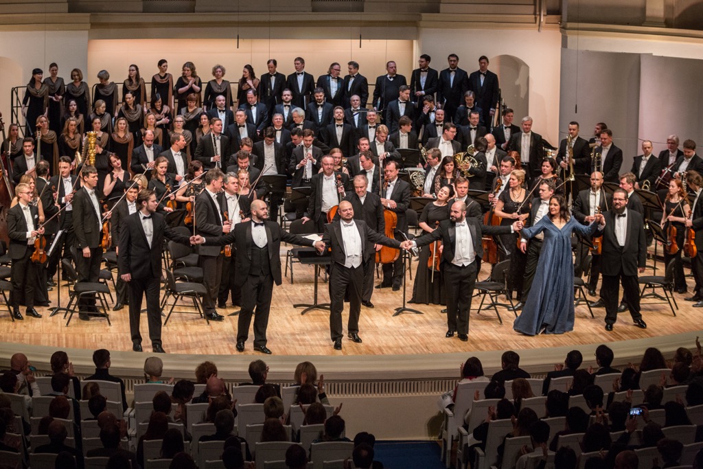 В первой половине сезона мариинский десант высаживался в Москве дважды. В конце сентября нам перепало «Золото Рейна» Вагнера, а в декабре опера «Не только любовь» Щедрина была представлена при наличии театрально-костюмного антуража и полновесных мизансцен, с элементами постановочной сценографии. Наконец, 4 февраля Симфонический оркестр, Хор и солисты Мариинского театра под управлением Валерия Гергиева на сцене Концертного зала имени Чайковского в рамках проекта Московской филармонии представили оперу Верди «Симон Бокканегра».