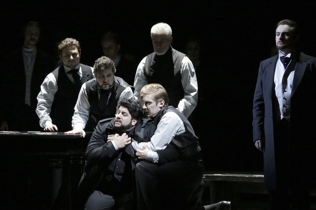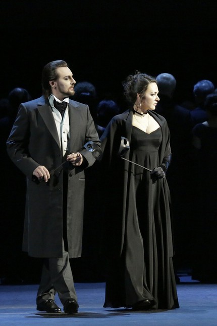 Еще раз нелишне будет констатировать: повесть Пушкина (светский анекдот на почве мистической одержимости главного героя) и опера Чайковского (полотно большого музыкально-«эпического» стиля) по-своему художественно ценны, харизматичны, но не сопоставимы. И всё, чего достигает режиссер, призывая под свои знамена знакомую нам постановочную команду и соединяя ее с музыкальными кадрами Большого театра, – это подмена оперы параллельным ей действом на фоне ярко-чувственного оперного оркестра и великолепного оперного хора (музыкальный руководитель и дирижер – Туган Сохиев, главный хормейстер – Валерий Борисов).