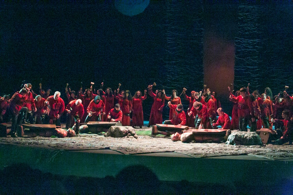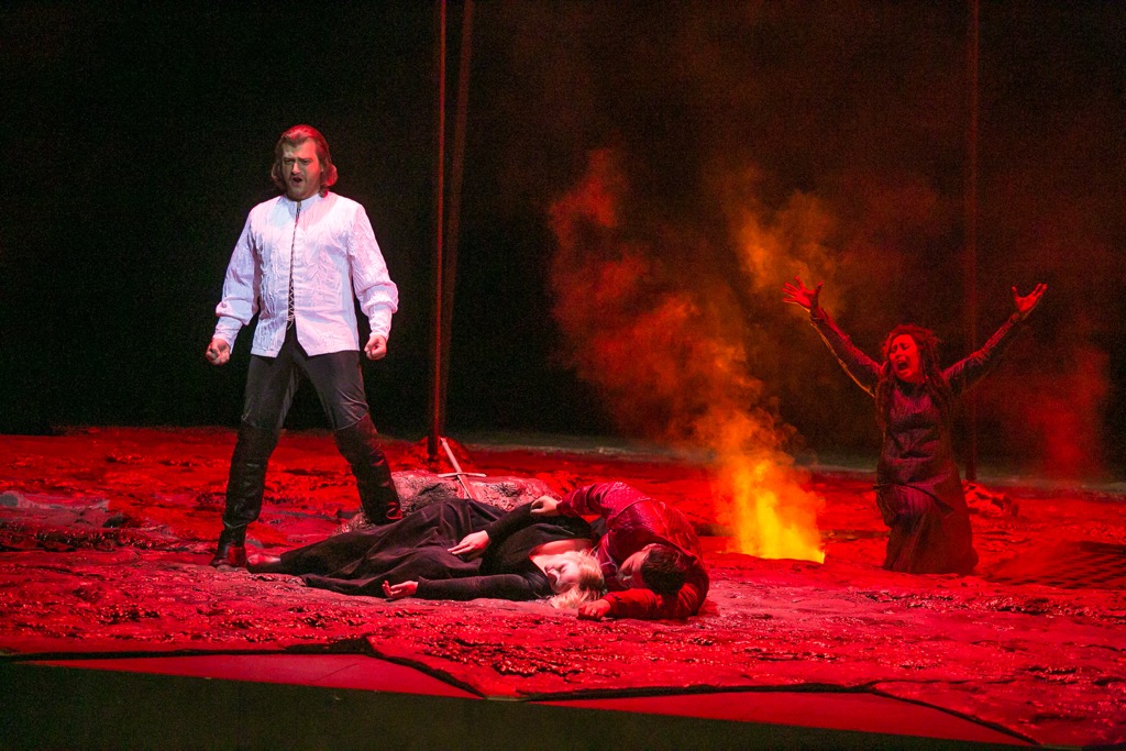 Вулкан роковых страстей и обстоятельств – как раз то, что и составляет квинтэссенцию сюжета, и Азучена оказывается в кратере словно в стихии огня. На последних тактах спектакля в немом исступлении «языческого» отчаяния она обращает свои взоры к луне, «висящей» на небосводе этого оперного ноктюрна и, благодаря искусной компьютерной анимации, угрожающе мистически меняющей свои фазы. Вспомним, что именно при лунном свете Леонора в начале оперы осознает свою ошибку: под покровом ночи она принимает Графа ди Луна за своего возлюбленного Манрико. И поэтому в спектакле – две луны (белая и красная, «христианская» и «языческая»). На протяжении спектакля они «светят» то порознь, то вместе, пока в финальной картине не наступает их решающее «великое противостояние». Так кто кого в этом противостоянии победил? Никто – никого, и все – всех! В сущности, жизнь – это череда рождений и смертей, а судьбы людей – песчинки вселенской человеческой драмы, и именно это в обсуждаемой постановке проступает невероятно объемно, выпукло и потрясающе стильно!