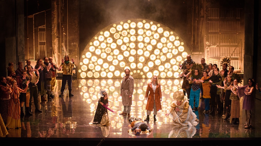 На этом прочном музыкально-пластическом фоне и разыгрывался созданный постановщиками theatrum mundi, глобальное действо, в котором смешалась античность, Франция, Древний Египет и современность. По содержанию спектакль не менее многослоен: это история мировой катастрофы и одновременно драма одной несчастной души.