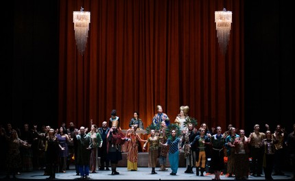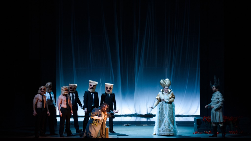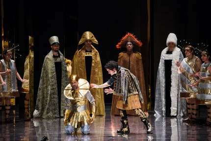При этом спектакль нельзя назвать исключительно творчеством французских «варягов», это именно полноценная коллаборация в виде интернационального состава певцов и сводного оркестра (скрипки и перкуссия «MusicAeterna», духовые и группа бассо континуо «Le Poème Harmonique»), который под управлением Венсана Дюместра прозвучал легко и грациозно, четко артикулируя и акцентируя вокальные партии.