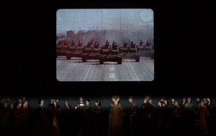Французская опера XVII века говорит на странном языке: она поет, танцует и декламирует. В те времена опера, балет и драма еще не распались на отдельные театральные жанры, они принципиально существовали в единстве. Балет был обязательным структурным компонентом музыкального спектакля, поэтому его нельзя просто купировать без ущерба для целого, но можно переосмыслить. В пермском «Фаэтоне» балетные дивертисменты заменили видеопроекции с кадрами исторической хроники: сценами массовых шествий, коронаций и катастроф.