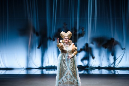 Однако пермская постановка решена в другом ключе. В ней парадоксальным образом сочетаются две тенденции: глубокое погружение в логику барокко и радикальный эксперимент.