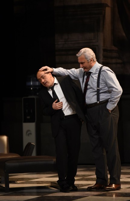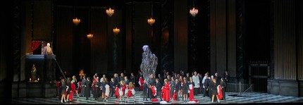 К слову, гигантские подвижные элементы декораций (добротная работа Ренаты Мартин и Андреаса Донхаузера), перемещающиеся взад-вперёд-вверх-вниз, кратковременно зрелищны, потом начинают мешать, как в уже упомянутом Te Deum или в сцене казни Каварадосси, которая происходит на крыше некоего заведения «Il Divo» с видом на Собор Св. Петра.