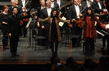 Ля-мажорная симфоническая прелюдия Дж. Пуччини открыла концерт Саксонской капеллы под управлением нового руководителя Венского симфонического оркестра Андреса Ороско-Эстрады. Молодой колумбийский маэстро ведёт оркестр уверенно и мягко, деликатно подготавливая фантастические кульминации и тонко и культурно завершая звучание этого романтического текста. Двойной фортепианный концерт Моцарта (ми-бемоль мажор, KV 365) очень живо исполнили знаменитые сёстры Катя и Мариэль Лабек. На бис французский дуэт исполнил фрагмент из «Четырёх моментов» для двух фортепиано Филипа Гласса, и это было, конечно, выше всяких похвал.