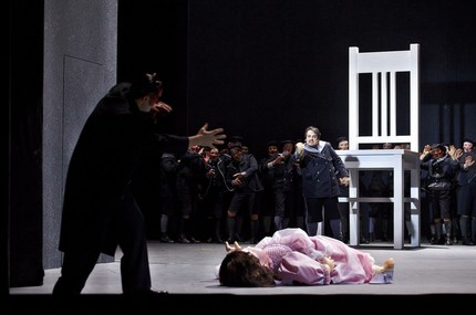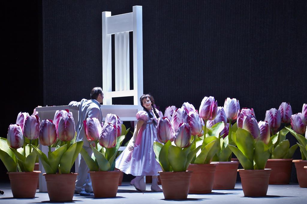 Персонажи теряются и находятся в тёмном лабиринте, Мефистофель вращает его. Путеводным розовым пятном в этом лабиринте стала Анита Хартиг. Она умело использовала свой хрустальный голос, чтобы тонко, полётно и устойчиво провести вокальную линию Маргариты, и привнесла в этот спектакль красоту.