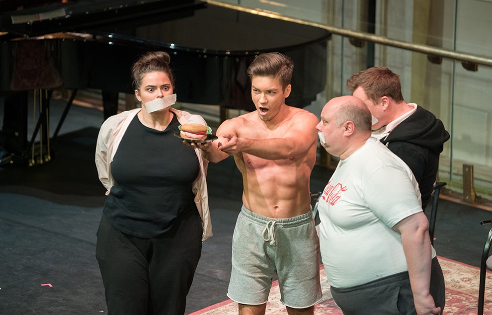 Скромный интеллигентный юноша преобразился в Силена — витального и обаятельного в шортах и пёстрой гавайке. Шелковистый голос купался в извивах мелодики с видимым удовольствием. Качественный английский — заслуга коуча «Молодёжки» Любови Левиной. В пении было много нюансов, даже лёгкая хрипотца после изрядного количества «спиртного» — найденная краска к характеру персонажа. Весело, позитивно и совсем не страшно! С музыкой спорить бесполезно, даже если тема харрасмента и «женской солидарности» привлекательна и злободневна.