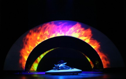 Предвечерьем нон-стоп подобное ощущение лишь зарождается, но с каждым актом каждого из трех основных вечеров оно усиливается в «геометрической прогрессии», к финальному монологу Брунгильды достигая величественного апофеоза. Непрерывность визуальной линии спектакля достигается и тем, что начало каждого вечера – «Валькирии», «Зигфрида» и «Гибели богов» – это «мимолетное» виртуальное возвращение к финалу предыдущей части. Неразрывная связь между вербальной и музыкальной субстанциями – то, что и составляет основу «поэтической мелодики» Вагнера. Впервые она «во весь голос» проступает именно в «Кольце нибелунга», а в обсуждаемой болгарской постановке она впечатляет особенно рельефно и выпукло, ибо в «космосе геометрии» сценографической абстракции ей «дышится» необычайно легко и вольготно.
