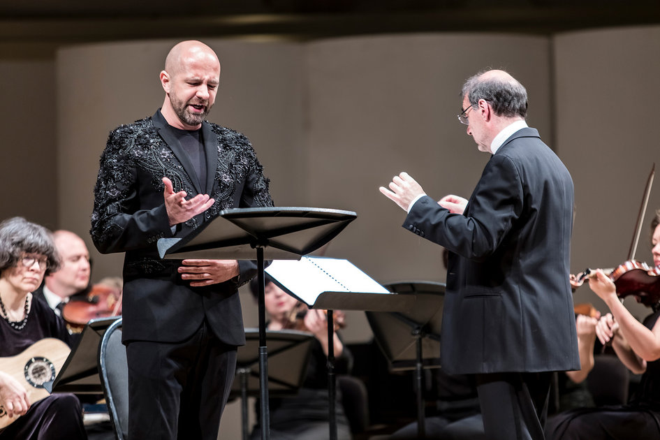 На круг выходит семь арий, и это значит, что Макс Эмануэль Ценчич исполнил ровно половину номеров, записанных на диске. «За кадром» остались еще одна ария из «Аэция», еще одна ария из «Филандра», еще одна ария из «Триумфа Камиллы», еще одна (третья) ария из «Карла Лысого», упомянутая выше ария из «Мериды и Селинунта», а также по одной арии из опер «Пор» и «Эней в Лациуме». В качестве «свободной» пьесы из серенады Порпоры «Анжелика и Медор» (1720) прозвучала также ария Роланда «Ombre amene». Итого, в основной программе концерта певец исполнил восемь арий. Один из двух бисов – третью песню Леля из «Снегурочки» – мы уже назвали, но главный интерес представляет первый бис, которым стала уже знакомая нам, но, оказалось, знакомая не вполне ария «Qual turbine che scende». Два года назад мы услышали ее как довольно продолжительную медленно-плавную меланхолическую пьесу, однако на сей раз она предстала как весьма компактная, поистине взрывная ария di bravura, что, похоже, и есть ее истинный музыкальный «паспорт».