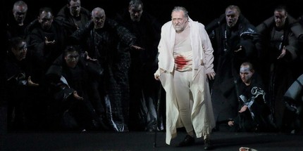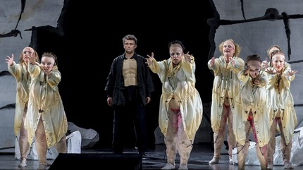 В этот вечер работу оркестра Баварской оперы под управлением Кирилла Петренко отличала тончайшая отполированность звуковых фраз и местами рискованная «игра» с паузами, пара штук из которых показались мне уж слишком затянутыми, как «под аплодисменты». К слову, об аплодисментах: единственным ценным моментом этой постановки стал великолепно сделанный свет (осветитель — Урс Шёнебаум) и особенно — медленное угасание красок в конце I акта, после которого, как известно, аплодировать строго запрещено. Но это решение-подсказка не помогла: нашлись в зале восторженные зрители, которые не только зааплодировали, но и заорали.