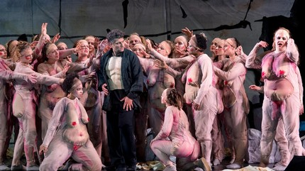 Новая постановка «Парсифаля» в Баварской опере — артефакт эпохального значения. И дело не в том, что вечно уставший режиссёр Пьер Оди в этот раз совсем отказался от динамической мизансценной структуры спектакля: на сцене почти ничего не происходит, а едва заметное шевеление лишь изредка выходит за рамки стандартной разводки провинциального драмкружка («Вася, встань сюда, скажи монолог; Петя отойди от Васи на два шага и скажи свою реплику»). Дело в том, что оформлением спектакля занимался страшный (во всех смыслах) и великий (только в смысле коммерческом) художник — профессор из Карлсруэ — Георг Базелитц (Ханс-Георг Керн, род. 1938 г.). Чтобы понять, что произошло на сцене Баварской оперы, достаточно ознакомиться с биографией и работами этого замечательного человека, всю жизнь свою положившего на убийство красоты.