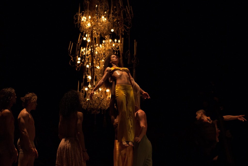 Что ещё можно отметить в этой выдающейся работе Яна Лауэрса? Постоянно спускающуюся и поднимающуюся и при этом вращающуюся люстру (по-моему, эта люстра вращалась уже в нью-йоркской постановке «Бури» Т. Адеса — хотя, возможно, там была другая люстра). Вроде ничего не упустил.