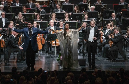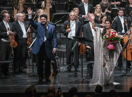 Финальным аккордом Зальцбургского фестиваля стал концерт семейного дуэта Анны Нетребко и Юсифа Эйвазова «A due voci» («На два голоса»). Пропустить это мероприятие было совершенно невозможно, поскольку вместо полноценного оперного выступления примадонны номер один фестивальной публике пришлось довольствоваться единственным концертом, который к тому же никак не записывался и нигде не транслировался. С одной стороны, в Зальцбурге умеют создать ажиотаж, а с другой… выдержала бы репутация фестиваля два таких мероприятия, — это ещё вопрос.