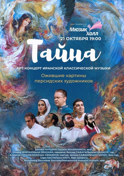 В Санкт-Петербурге уже оживали картины В. ван Гога, теперь пришло время «озвучить» полотна иранского художника Махмуда Фаршчияна. В «Мюзик-Холле» 21 октября состоится арт-концерт «Тайна», где под живые звуки каманче, тара, сантура и флейты ней группы «Гамар» и пение-аваз Хосейна Нуршарга оживут герои картин Фаршчияна. Некоторые из полотен этого художника находятся в собраниях королев Англии и Нидерландов.
