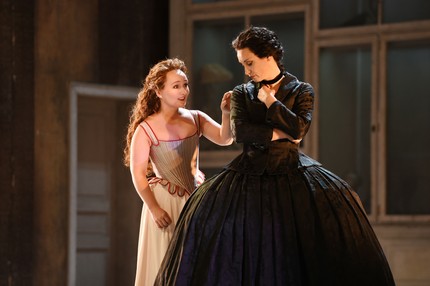 Позже она осталась в корсете, а потом сменила его на занудную юбку миди и белую блузку, как будто заседает секретаршей в старообразном бюро. Моргана на свою беду влюбляется в Брадаманте, временно отвергнутую возлюбленную Руджеро, переодетую мужчиной. Плавное пение Юлии Лежневой «в оригинале» больше всего поразило чувственной глубиной, ореолом женственной страстности, витающим вокруг строгой формы её арий.