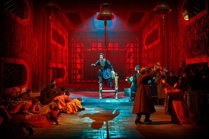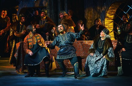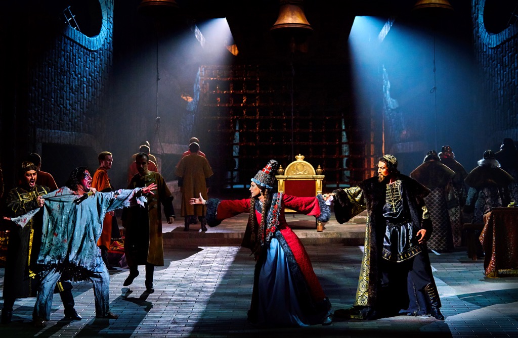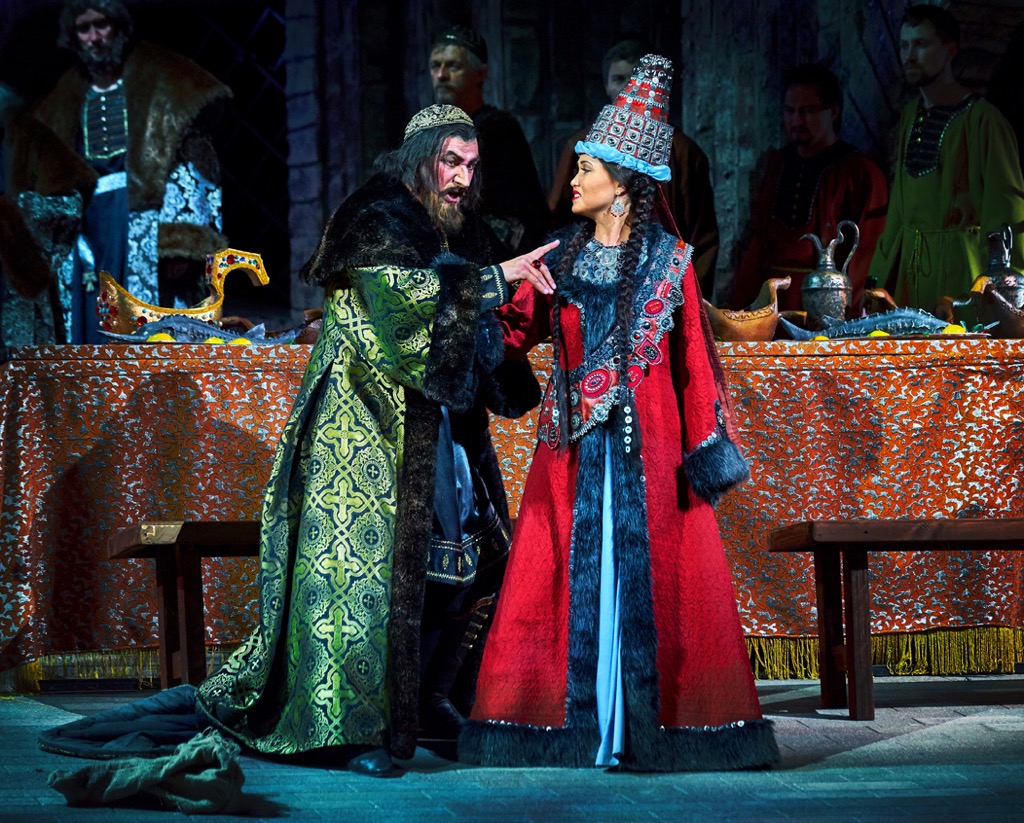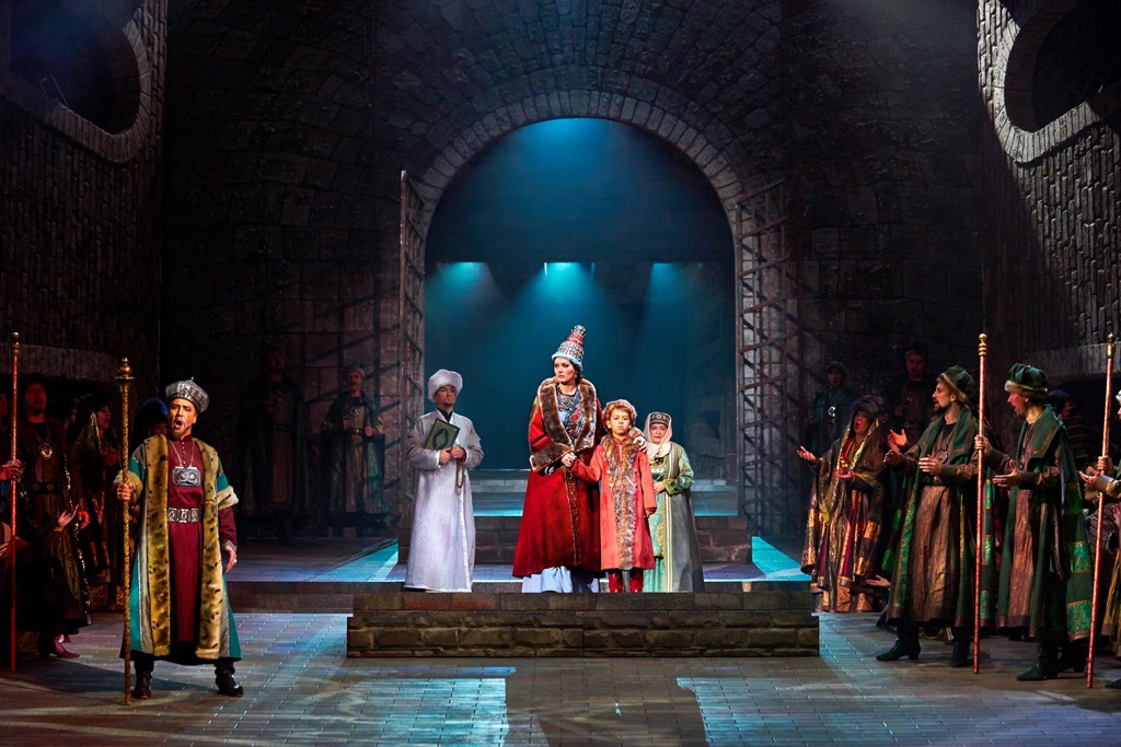 Опытного Ахмеда Агади в партии Ивана Грозного просто не узнать: настолько мощно и масштабно его вокально-драматическое перевоплощение. Но молодость в лице другого исполнителя этой партии Ярамира Низамутдинова поразительно чистым интонированием и будоражаще свежей звонкостью тембра тенору-премьеру буквально наступает на пятки! В партии Анастасии равно хороши и вокально-фактурны обе исполнительницы (Александра Саульская-Шулятьева и Дарья Рябинко), но подчеркнуто сочная контральтовая фактура последней в сочетании с ярко-спинтовым звучанием Гюльнары Низамовой производит эффект особенно сильный! В ансамбле певцов – два роскошных Шигалея (Филюс Кагиров и Ильгам Валиев), два изумительных Кошчака (Артур Исламов и Марат Мухаметзянов), два сильных Бибарса (Сервер Кадиров и Айдар Нургаянов), два достойных исполнителя небольшой партии князя Серебряного (Юрий Ившин и Ирек Фаттахов) и, наконец, весьма «певучая» пара чичанов (Илюс Гильманшин и Фанис Мухтаров в двух составах). И каждый из солистов вносит свой вклад в то, что «врата небес» оказываются распахнутыми музыке!