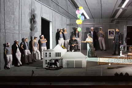 Когда читаешь предпосланные к премьере экспликации режиссера, сценографа и художника по костюмам, которые, надо сказать, довольно интересны как некий «умный артефакт», но абсолютно не аргументированы, это одна сторона дела. Но отцы спектакля – вовсе ведь не его адвокаты и не артисты разговорного жанра, а их творческий результат на выходе – созданная ими театральная продукция. Увы, с открытием занавеса весь интерес к разговорной прелюдии, пропадает, ибо то, что в тоске и унынии приходится созерцать на сцене, – вовсе не история, заложенная в либретто и музыке, а надуманное параллельное действо привнесенное в угоду амбициям самовыражения постановщиков. Оно не только намеренно искажает оригинал авторов (композитора и либреттистов), которые подать в суд за нарушение авторских прав, естественно, уже не могут, но и, по сути (хочется верить, не намеренно, а неосознанно), убивают оперу как жанр, причем – очень даже «успешно»!