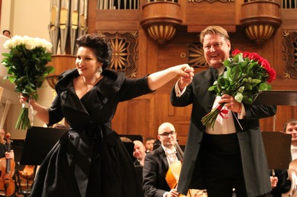 Герои первого концерта «Казанской осени» этого года — Ольга Толкмит из «Геликон-оперы» и солист Большого театра, выученик консерватории Санкт-Петербурга Андрей Жилиховский. Программа концерта — арии и дуэты, увертюры к операм Моцарта, Пуччини, Дворжака, Россини, Бизе, Чайковского.