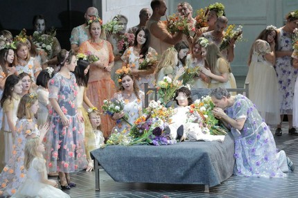 За пультом в этот прекрасный вечер вместо Кирилла Петренко стоял не менее прекрасный Ашер Фишер, оркестр действительно звучал — дрожали люстры и колонны (как с К. Петренко отрепетировали — так с Фишером и сыграли), — хор был слажен и строен (хормейстер Йорн Хиннерк Андерсен), ансамбль солистов звучал предсказуемо.