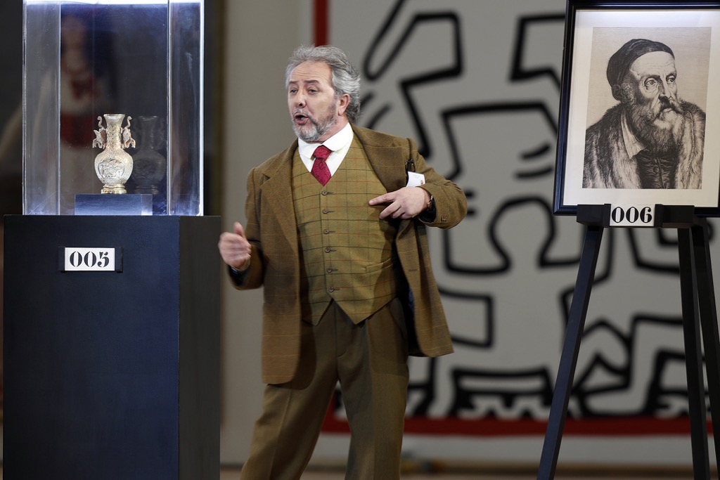 Впрочем, милая, эстетически тонкая и довольно зрелищная изобретательность не мешает ему быть решительным и на этот раз: всё действие вместо гостиницы «Золотая лилия» локализовано в выставочной галерее с одноименным названием. В ней для обзора публики выставляются картины и иные артефакты, а также устраиваются аукционы по их продаже богатеньким коллекционерам. При этом один из таких аукционов проводит Дон Профондо прямо во время исполнения своей знаменитой арии «со списком»: он теперь не только искусствовед, постоянно появляющийся с каталогом в руках, но и лицитатор.