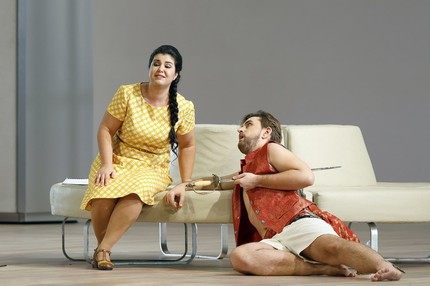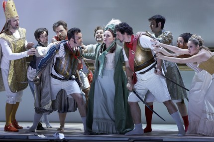 Однако наиболее придирчивый интерес всегда вызывает другой дуэт – дуэт Мелибеи и Графа Либенскофа, ибо именно в нём у еще одного tenore di grazia и есть главная обойма высоких нот, которыми он должен выстрелить. Американец Микеле Анджелини пел эту партию и в молодежном «Реймсе» в Пезаро, но его стилем Россини и высокими нотами по-настоящему удалось впечатлиться недавно в партии Идрено в Баварской государственной опере. Речь идет о той постановке «Семирамиды», в которой главную партию блистательно исполнила Альбина Шагимуратова.