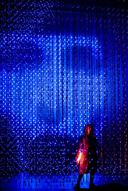 Разрабатывая спектакль, постановщики, в основном, играли со светом – от стробоскопических эффектов быстро появляется усталость. На гирляндах, развешенных в несколько рядов, всё искрилось двигающимися картинками и сменяющимися узорами. Свет символизирует стремления эпохи Просвещения (времени написания оперы Моцарта):