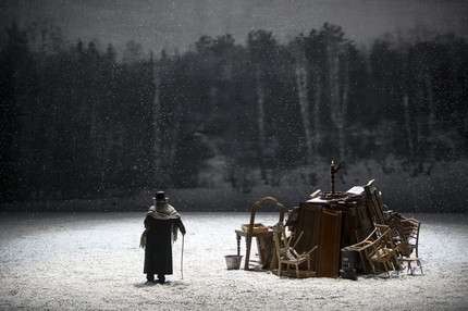Полны фантазии и крайне выразительна сценография Руфуса Дидвисцуса: первый акт представляет собой штетль, второй – безутешный зимний пейзаж, так хорошо знакомый людям, родившимся в России.