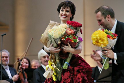 Так что сомнения в выборе репертуара бельканто для нынешней программы возникли еще на этапе ее анонсирования. Но сомнения сомнениями, а ведь певица записала целый аудиодиск под названием «Spirito» с фрагментами из опер Беллини («Норма» и «Пират»), Доницетти («Анна Болейн» и «Мария Стюарт») и Спонтини («Весталка»), вышедший на лейбле «Prima Classic» в ноябре прошлого года – совсем недавно! Особый стиль музыки Спонтини от бельканто Беллини и Доницетти стоит, конечно же, особняком, но в первом приближении романтическое начало как раз и есть то, что их, несомненно, сближает. К слову, первым из двух бисов нынешнего вечера как раз и стала ария Джулии из второго акта «Весталки», правда, без медленного (довольно длинного) раздела «Toi, que j’implore avec effroi». Мы услышали следующую за ним весьма энергичную связку «Sur cet autel sacré … Impitoyables dieux!», спетую, опять же, чрезмерно напористо, с вокальными «накатами», с прерывистостью кантилены и «холодом» абсолютного равнодушия на сей раз на языке оригинала – французском (как это и записано на упомянутом выше CD).