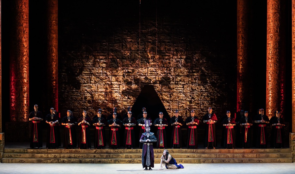 И Диянова, и Бустаманте, наделенные отличными вокальными данными, красивые и темпераментные, — достойные соперницы. Именно как поединок равных и выстраивает их отношения режиссер. Но все же, хоть чуть-чуть, его симпатии на стороне Амнерис. Дочь царя Египта в исполнении этой партии Лаурой Бустаманте — горда, беззащитна в своем давящем положении нелюбимой, и коварна.