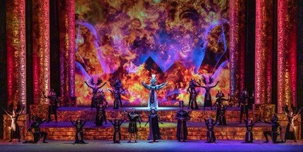 Прочтение оперы Верди Алексеем Степанюком весьма неожиданно. Одним из главных фигур в его спектакле становится верховный жрец Рамфис (Евгений Плеханов). Достаточно загадочный персонаж, которому во многих постановках «Аиды» отведено чуть ли ни служебное место.