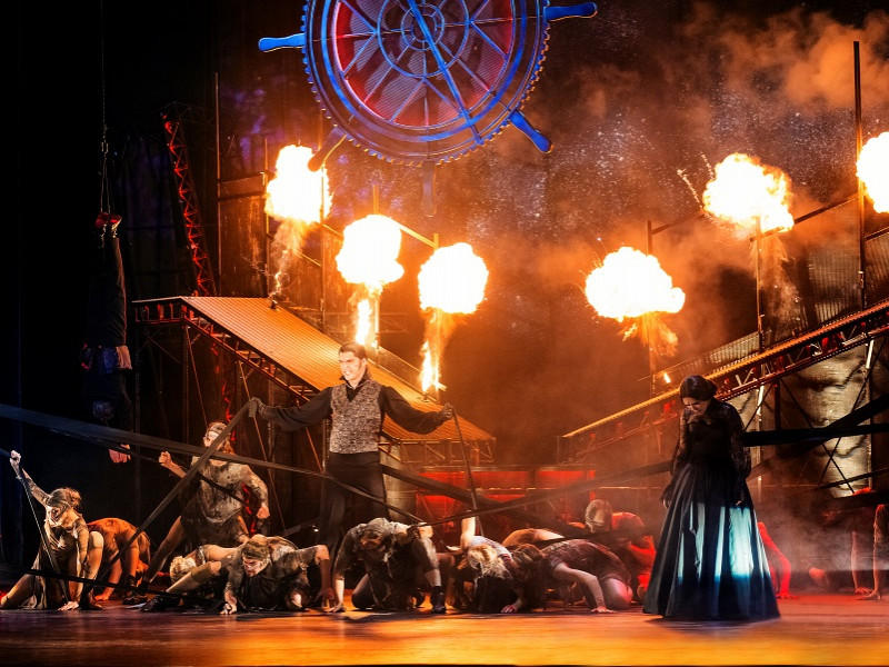 Номинирована и работа художника по свету Петера Шомфаи – автора занимательных эффектов на двух занавесах-экранах (основном на заднике и полупрозрачном посередине). Самый впечатляющий эпизод – это, конечно, погружение Дантеса в бирюзовую морскую глубину.
