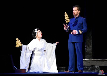 В данном случае именно с титульной героиней (Хироко Морито) оказалась проблема, и это не была вина дирекции. На ее участие в премьере в Одессе и последующих показах за границей настоял импресарио, а как известно, «тот кто платит, заказывает музыку». Японская певица — очень неплохая актриса, но ее несколько субреточного тембра голос скорее подходит для мюзикла «Моя прекрасная леди». Эдуард Мартынюк — не только отличный певец, с уверенным верхним регистром, но и блестящий актёр — в этой постановке показался мне несколько скованным. Скорее всего, из-за своих индивидуальных гастролей, Мартынюк не смог участвовать во всем постановочном процессе.