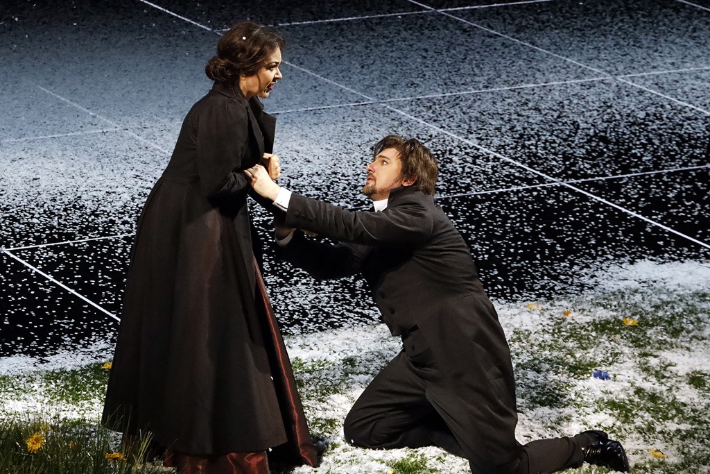 Хорошо известен термин «онегинская строфа», подразумевающий особый склад 14-строчной строфы, которой написан роман в стихах Александра Сергеевича Пушкина «Евгений Онегин». Однако после майской премьеры в Большом театре России, «объектом покушения» которой стала ни в чем не повинная опера «Евгений Онегин» Петра Ильича Чайковского, пришлось выучить новый театральный термин «онегинская поляна». Да-да: именно поляна, но не та, что обычно накрывают по случаю «проставления», а та, которой «накрыли» представление оперы Чайковского, заодно «разведя» и публику. В очередной раз лирические сцены на основе хрестоматийного романа в стихах с либретто композитора и Константина Шиловского превратились в дилетантский любительский театр. Впрочем, в стенах Большого театра это давно уже не ново по отношению к русской опере вообще.