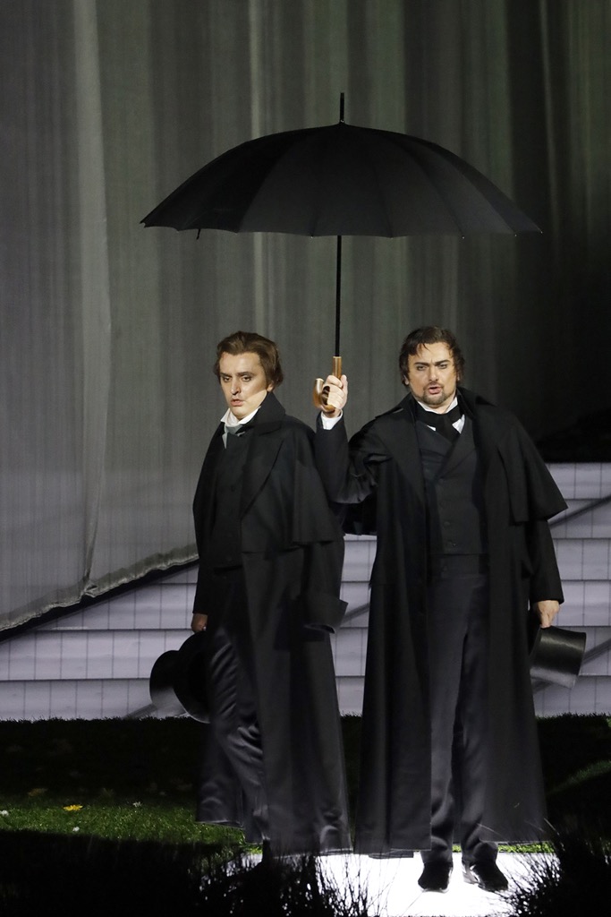 Наиболее критичным это оказалось для финальной сцены, оставившей в отношении исполнителя чувство полного слушательского равнодушия. Да и образ Онегина в этой постановке, включая мешковатый костюм в первых картинах и лохматую на протяжении всего спектакля шевелюру, с типом «лондонского денди» коррелировал мало. Однако это уже вопрос не к артисту. Это вопрос совсем из другой оперы, как водится, – пресловутой режиссерской, ибо только она одна и способна с нахрапа «накрыть» оперу «Евгений Онегин» онегинской поляной…