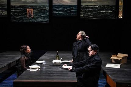 В сценографии Мари-Терезы Йоссен задан контраст между морскими пейзажами на стене — изображениями вольной стихии, к которой тянется Тереза (её отец — моряк) — и загромождающими сцену массивными комодами с бесчисленными ящиками. Комоды не дают возможности свободно двигаться, оставляют только узкие проходы. Потом на морские пейзажи прицепили портрет Камиля (контртенор Тим Зеверло), ставшего невольной преградой на пути к свободе и при жизни, и после своей смерти.