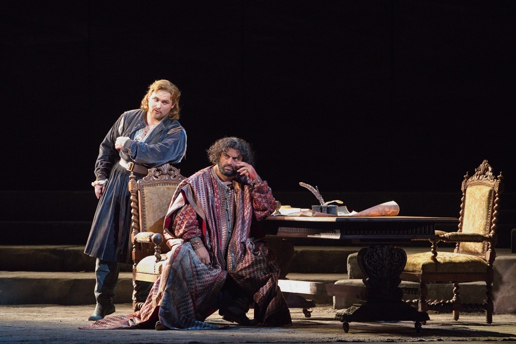 В качестве постановщика «Отелло» был приглашен корифей кинематографа Андрей Кончаловский, который в действительности имеет музыкальное образование и время от времени обращается к оперной режиссуре. Многое в визуальном ряду «Отелло» буквально просится на большой экран — детальные исторические костюмы (художник по костюмам Дмитрий Андреев), мелкий реквизит, продуманные массовые сцены и шествия, индивидуальный рисунок ролей большинства персонажей. Надеемся, оперу потом выпустят на DVD, так как всю эту красоту в мелочах (например, катящиеся по ступенькам апельсины или кинжал, который Дездемона спрятала перед последней сценой, а уже отдавший свой меч Отелло уверенно нашел) нужно смотреть крупным планом.
