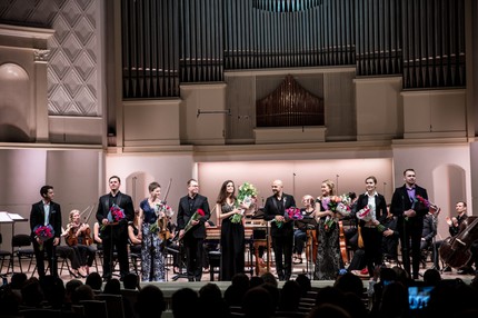Разговор о певцах еще впереди, но об изумительном оркестре скажем сразу как о коллективе высочайших профессионалов, музыкантский драйв которых поистине творил чудеса, околдовывая наивно «простыми», но прелестно тонкими, изысканно «мягкими», светлыми гармониями, донести всю красоту и чувственную эмоциональность которых до слушателя отнюдь ведь не просто! Внимая «закрученной» интриге сюжета, стилистически изящно доносимой до слуха всем ансамблем певцов, и человечно-искренним, трогающим душу фигурациям оркестра, мы словно уносились в прекрасную сказку, забыв не только о «польском фундаменте», но и обо всех перипетиях сюжета, испытывая один живой восторг от чистой музыки – от исторически информированного звучания оркестра и голосов.