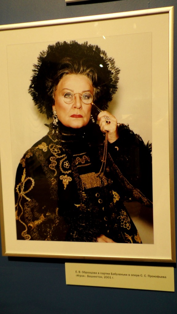 Эта выставка была бы неполной без платьев Графини из «Пиковой дамы», еще одной коронной роли Образцовой. И они представлены, как и прекрасные портреты Елены в образе Графини. Это образ колдовской, мистический, как и Марфа из «Хованщины», но если Графинина мистика распространялась на людей из её окружения, то Марфа обращалась ещё и к душам, «отбывшим в мир неведомый».