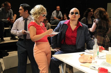 Все интенсивно строили гримасы — так, видимо, постановщики отсылали к напряженным улыбкам в соцреалистическом искусстве. Особенно в этом плане переигрывала Наама Шульман (Лидочка), совершенно испортив впечатление от своей героини.
