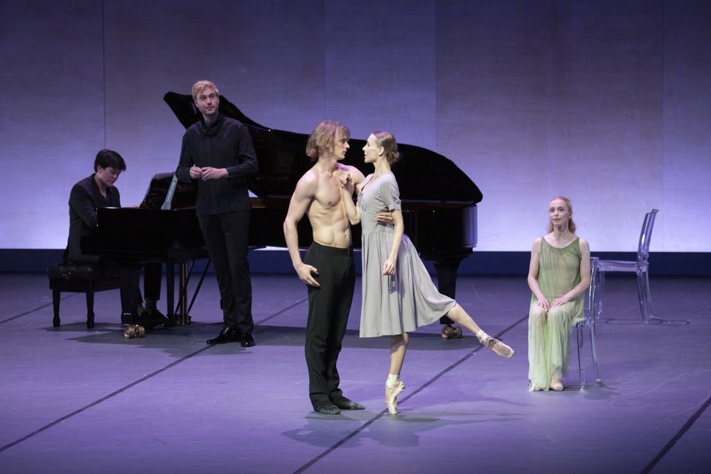 Второе действие было занято балетом «В полночь» на музыку «Семи песен последних лет» Густава Малера. Малер чувствовал себя «потерянным и умершим для мира», а я, увы, ещё пока полна сил и недостаточно стара и больна, чтобы воспринять это предсмертное произведение великого композитора. Хотя немецкий баритон Беньямин Аппль и превосходно исполнил песни, чтобы выдержать этот балет, нужно потратить годы на привыкание к немецкой скуке. Дирижёр Саймон Хьюит мог бы и немного ускориться. Сильвия Аццони в прозрачных светло-зелёных одеждах несколько оживляла своей светлой аурой это призрачное угловатое действо, слабо вписанное в музыкальный аккомпанемент.
