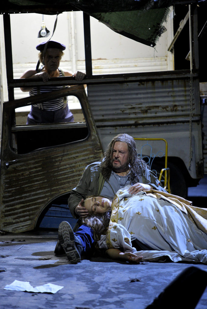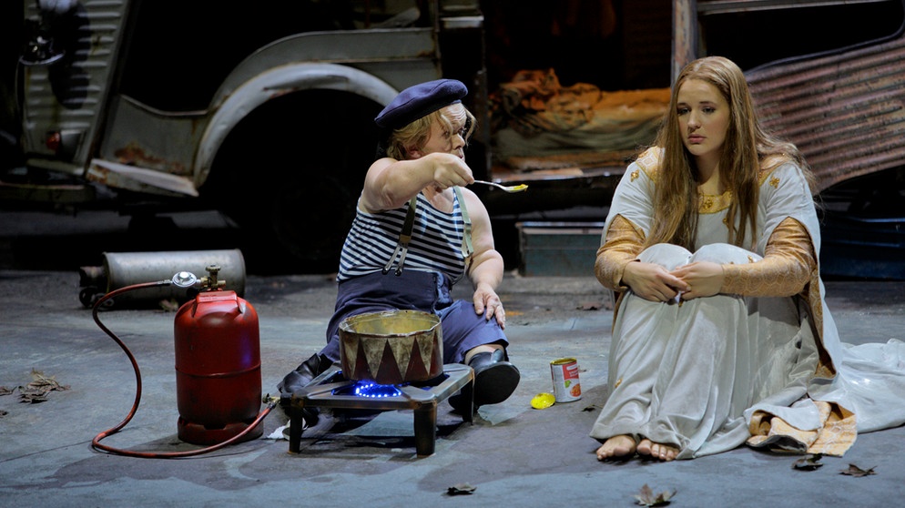 Теперь о визуальном. Визуальное было всё карнавальным: негр-трансвестит, карлик с барабаном, Венера-убийца-террористка-пусси-райот в «Ситроене» Марины Абрамович, клоун Тангейзер, суицидница Элизабет, интермедийные техно-трэш инсталляции в парке у Зелёного холма — полный бедлам. Но тут главное — не забывать, что Байройт — город красивый, исторический, университетский, культовый, но маленький: слава его — локальная, а достижения все — фамильные. Это очень важно для корректной оценки местной постановочной традиции, о которой поговорим в последнем итоговом обзоре. В общих же чертах, вот что представил нам режиссёр Тобиас Кратцер, увенчанный титулом «Режиссёр года 2018»: