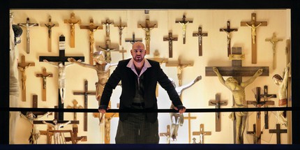 В своём «Парсифале» Р. Вагнер серьёзно перерабатывает христианскую догматику, добираясь до её диалектически жертвенных основ: чтобы родить, нужно согрешить, чтобы спасти, нужно убить, чтобы жить, надо умереть. Известно, что центральной темой христианской этики является героизм: один убивает себя за всех, то есть когда одному плохо, а всем хорошо. Этот смысл и становится в «Парсифале» ключом к пониманию сути не только христинской литургии, во время которой мы, христиане, пьём кровь и поедаем тело нашего Спасителя, но и к самому подвигу Христа, повторить который в тех же масштабах совершенно невозможно: никому не под силу сегодня освободить человечество от всех его грехов и преступлений (как совершённых, так и только запланированных). Попытку приоткрыть и рассмотреть именно эти сакральные смыслы мистерии предпринял на священной байройтской сцене в 2016 г. Уве Эрик Лауфенберг.