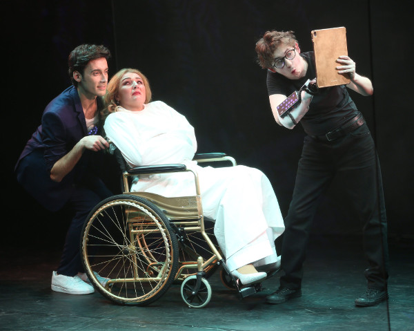 Через Люси-Монику и мимического персонажа Тоби (не просто без пения, но и вообще без слов), который таковым является как раз по задумке Менотти, «предыстория любовной истории» Моники и Тоби из «Медиума» вытягивается теперь в его пролог «Телефон». Скажите на милость, как остроумно и креативно!.. Но вот незадача: Бен-Тоби в «Телефоне» должен еще и петь, а немой Тоби этого, в принципе, не может. Вот и раздваивается его сущность на гения Тоби (на сей раз «обитателя» инвалидной коляски) и созданного им поющего робота-интеллектуала Бена. Управляемый своим создателем робот в отношениях с Люси-Моникой подменяет Бена-Тоби, а всё происходящее теперь в скайп-прологе – не иначе как «карикатурный сюрреализм» в виртуальной интернет-паутине…