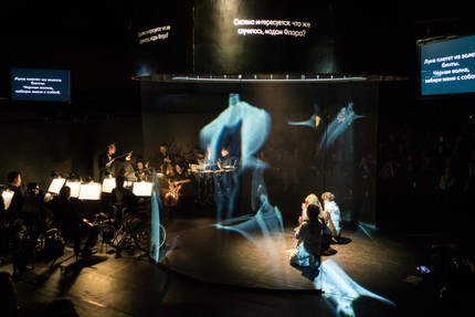Невероятно живое, мелодически обволакивающее ощущение от музыки, особенно от «Медиума», несомненно, есть. Частные позитивные ощущения от визуальных эффектов есть тоже, но целостного ощущения театральности, особенно когда «коня» «Медиума» впрягли в одну упряжку с «трепетной ланью» «Телефона», увы, нет. С оркестром осязаемо профессионально – основательно скрупулезно и тонко – поработал дирижер-постановщик Алексей Верещагин (ассистент дирижера – Роман Денисов).