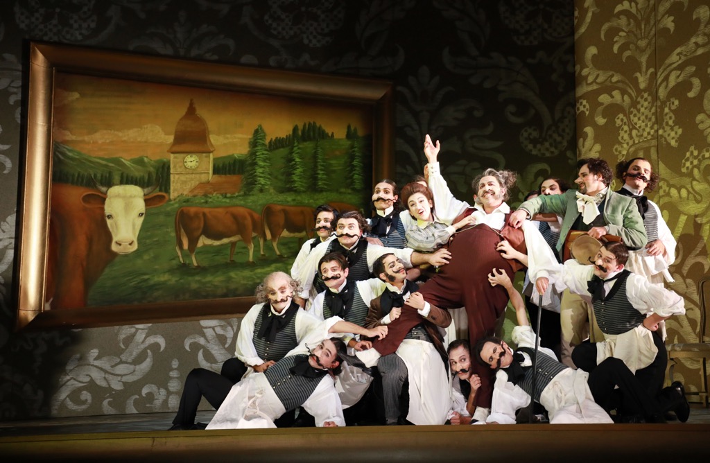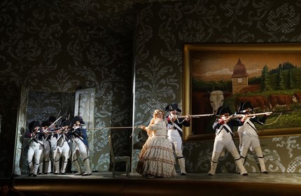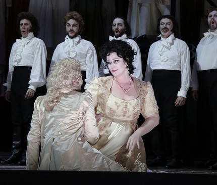 А если эта роскошь исходит от таких далеко не однозначных «опермейкеров», как Моше Лейзер и Патрис Корье, всегда работающих в паре и зачастую в своих фантазиях «ребенка оперы» не просто выплескивающих, но и с легкостью убивающих (опять же, как в «Семирамиде» Грэма Вика), то в силу неожиданности это праздник вдвойне! Названный бельгийско-французский режиссерский дуэт в его традиционном тандеме со сценографом Кристианом Фенуйей, художником по костюмам Агостино Кавалкой и художником по свету Кристофом Форе в новой концепции, приложенной к dramma giocoso per musica на либретто Гаэтано Гасбарри, поражает воображение, прежде всего, живописной роскошью постановочного минимализма, но сей тезис, конечно же, требует пояснений.